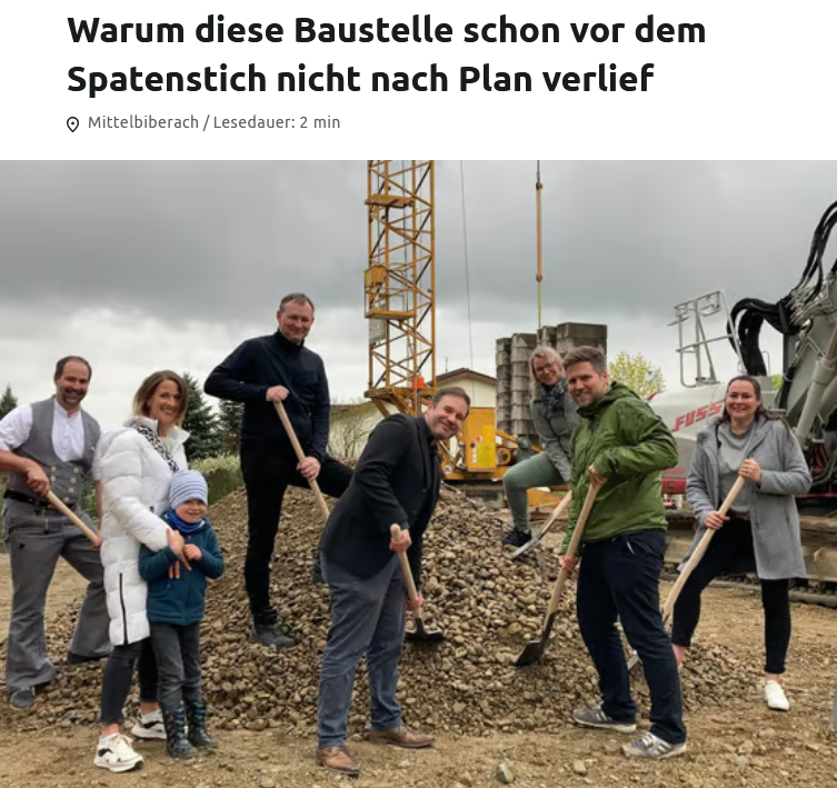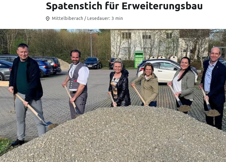 Ein Großprojekt ist gestartet: Mit dem Spatenstich beginnt offiziell die Bauphase für den neuen Kindergarten in Mittelbiberach. Gegenüber der Grundschule soll das moderne Gebäude mit viel Holz entstehen und später Platz