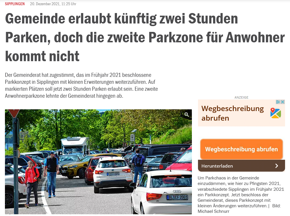 Der Gemeinderat hat zugestimmt, das im Frühjahr 2021 beschlossene Parkkonzept in Sipplingen mit kleinen Erweiterungen weiterzuführen. Auf markierten Plätzen soll jetzt zwei Stunden Parken erlaubt sein. Eine zweite Anwohnerparkzone ...